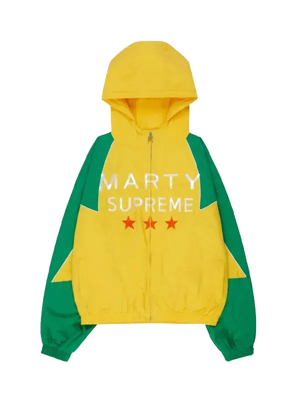 This jacket is worn by Hailey Bieber, inspired by the Marty Supreme aesthetic. This jacket features a premium polyester exterior, soft lining, a hooded collar, front zipper closure, long sleeves, and practical pockets. It is perfect for celebrity-inspired streetwear, casual outings, and everyday looks with a trendy, iconic vibe.