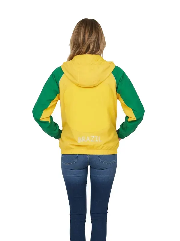 I bought this jacket myself forty words exactly cheerful yellow and green colours cosy soft lining hooded style protective for weather outside pockets great for phone comfortable material elastic cuffs snug fit smooth zipper closure casual stylish choice perfect for daily walks and outings.