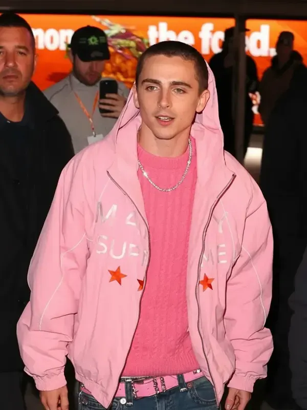 In the spirited world of Marty Supreme, Timothee Chalamet shines as an unforgettable dream chaser whose eccentric journey makes the story unforgettable. This pink jacket feels soft yet tough, delivering warmth, comfort, and a trendy look that pops with color, making it perfect for everyday city wear or adding playful flair to fan collections.