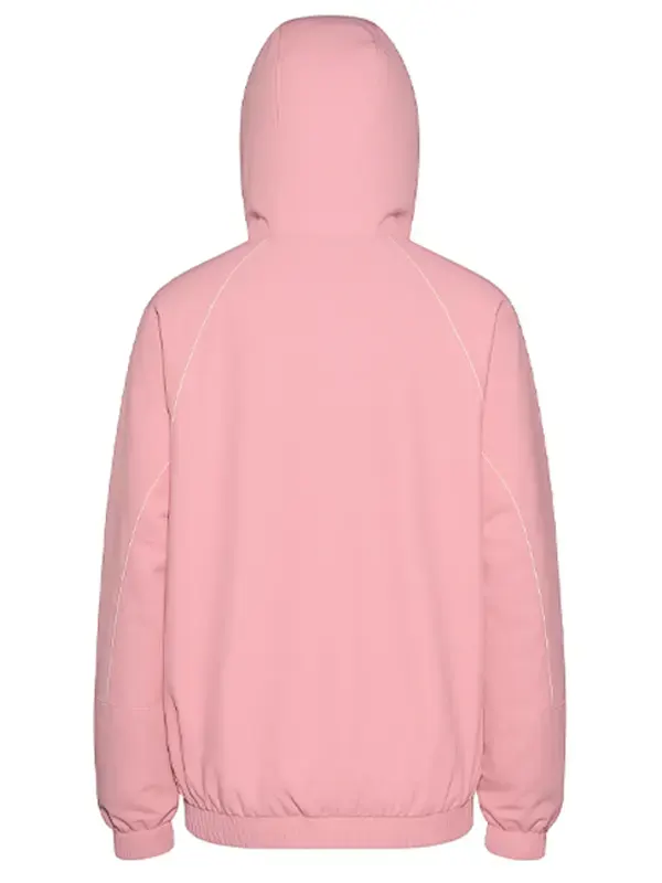 I purchased this light pink jacket myself and I am very happy with the fit and quality. The soft polyester material feels comfortable, the elasticated cuffs and waist keep it snug, and the hood is practical for everyday use.