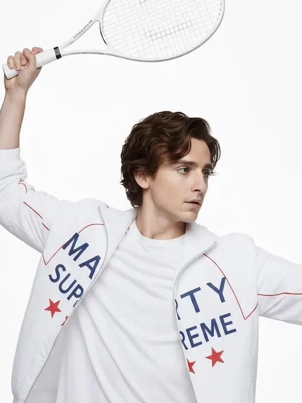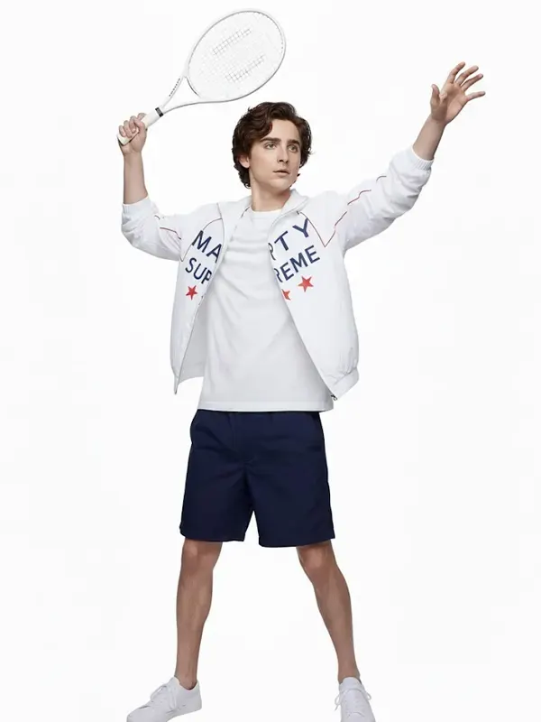 Timothee Chalamet embodies Marty with heart, courage, and fierce drive in the acclaimed film Marty Supreme that thrills fans with sport, drama, and charm. This white jacket made from soft quality leather features warm lining, sleek silhouette, and lasting comfort ideal for day trips, nights ou,t and standout casual fashion.