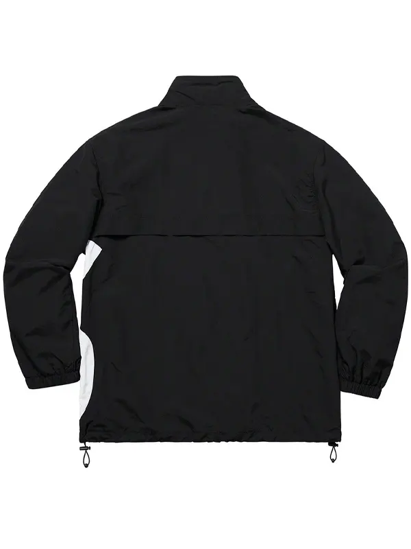 Supreme Black Windbreaker Jacket is built using the lightweight polyester, matched with soft viscose lining, providing full length sleeves, elasticated cuffs, a stand up collar, zipper closure, two outside pockets, plus one inside pocket. Its clean black appearance works well for active days, travel plans, and casual wear.